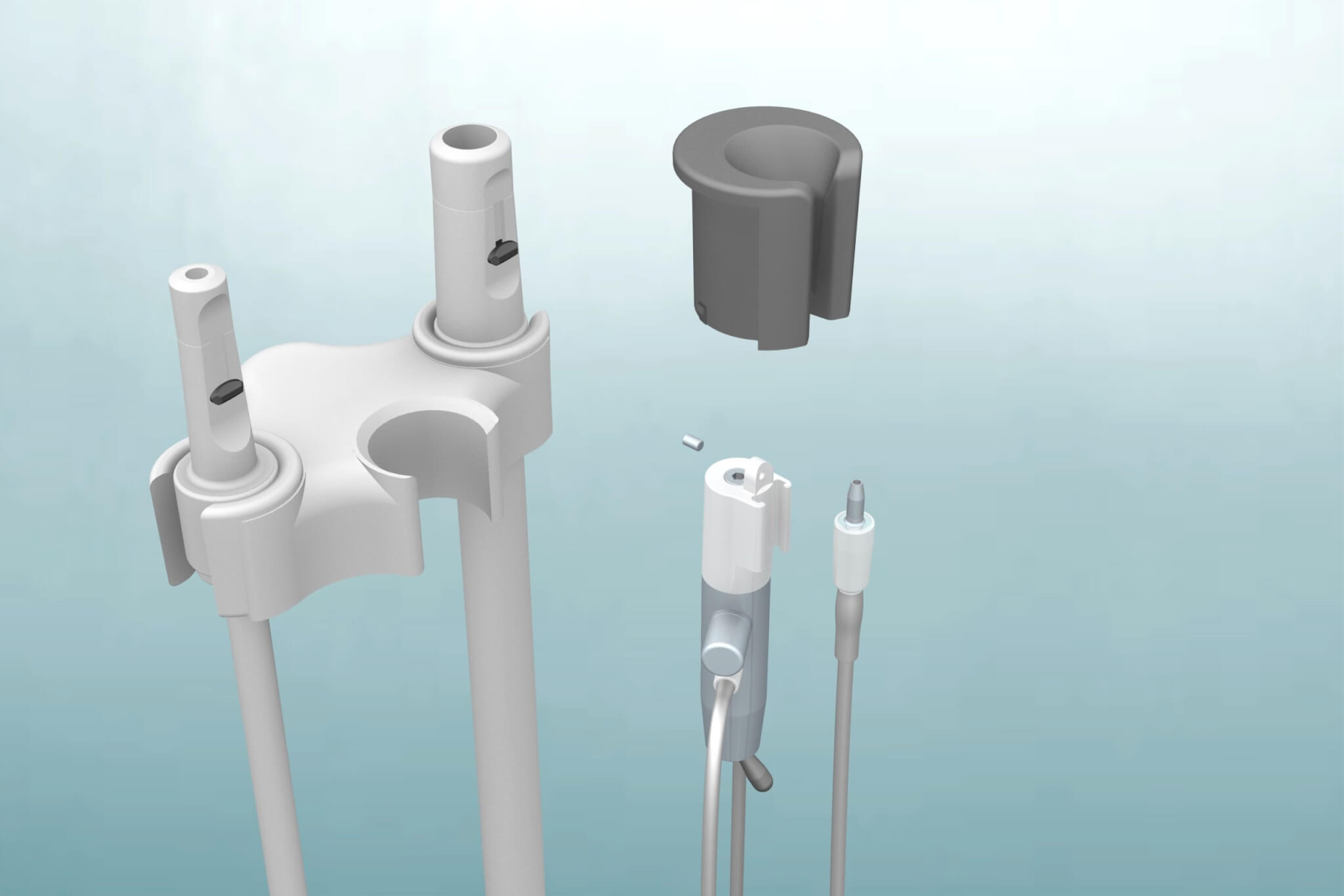 Adaptateur pour l'intégration du régulateur d'air Yirro-plus® COMFORT ou PREMIUM dans un emplacement libre de l'unité d'assistance de HEKA-UNICLINE.