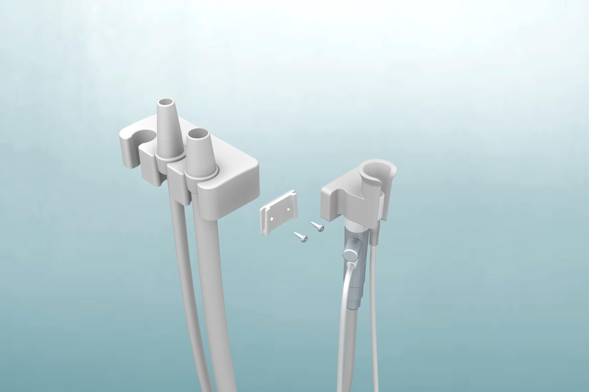 Supporto mobile per il montaggio dell'aggancio Yirro-plus® COMFORT o PREMIUM su una superficie piana verticale. Il supporto di aggancio può essere facilmente montato su una superficie verticale dell'unità assistente con una striscia di colla 3M.
