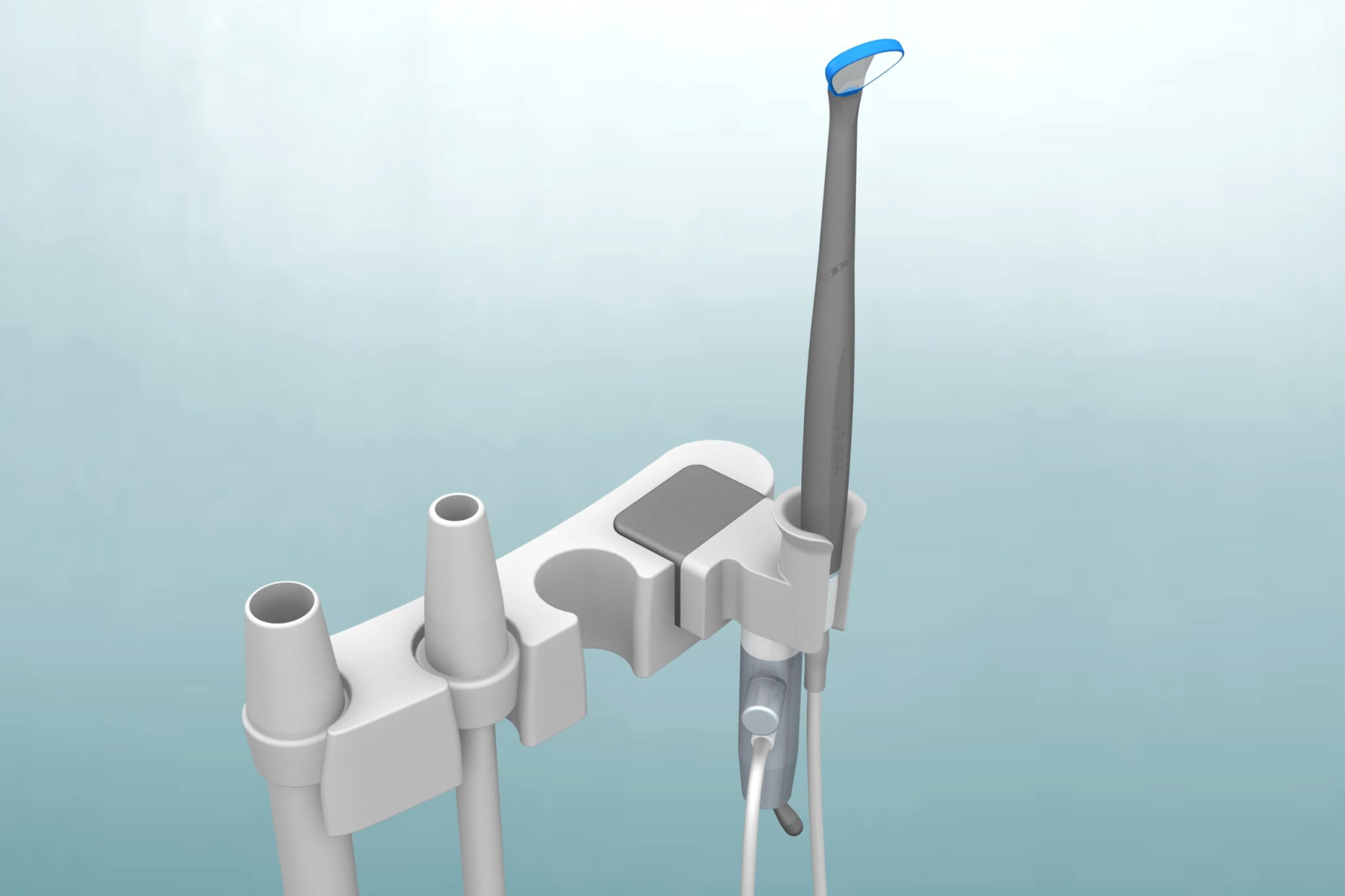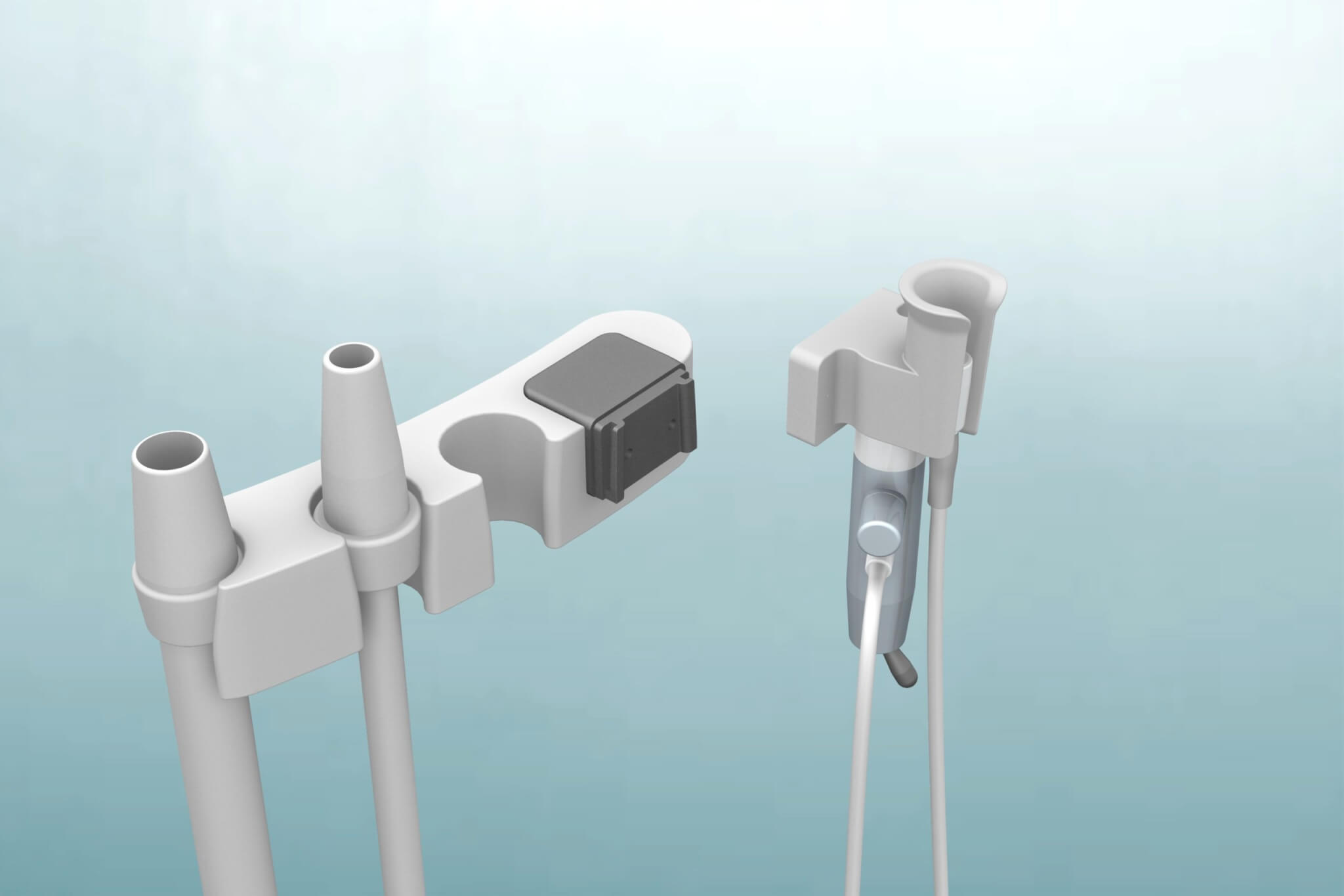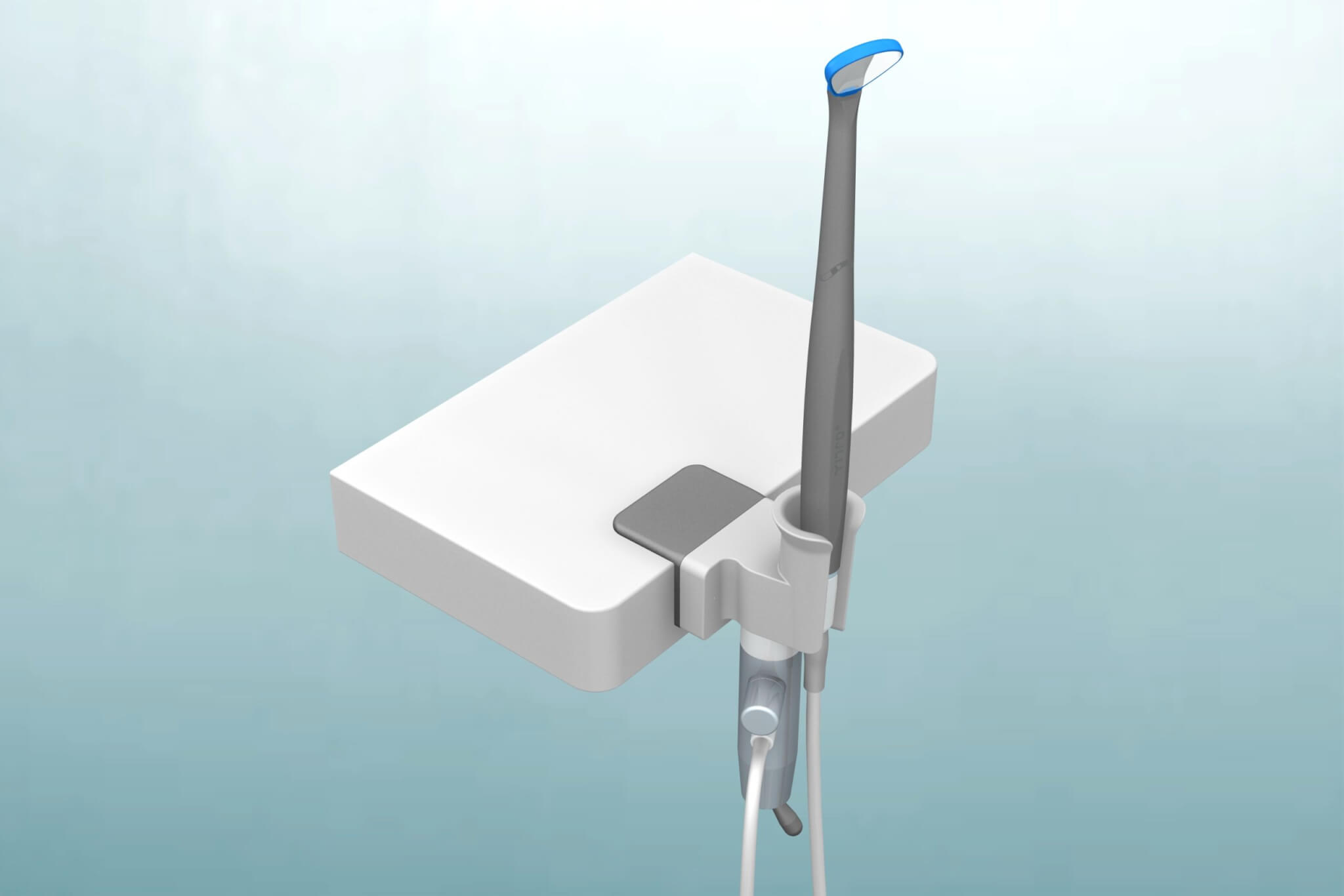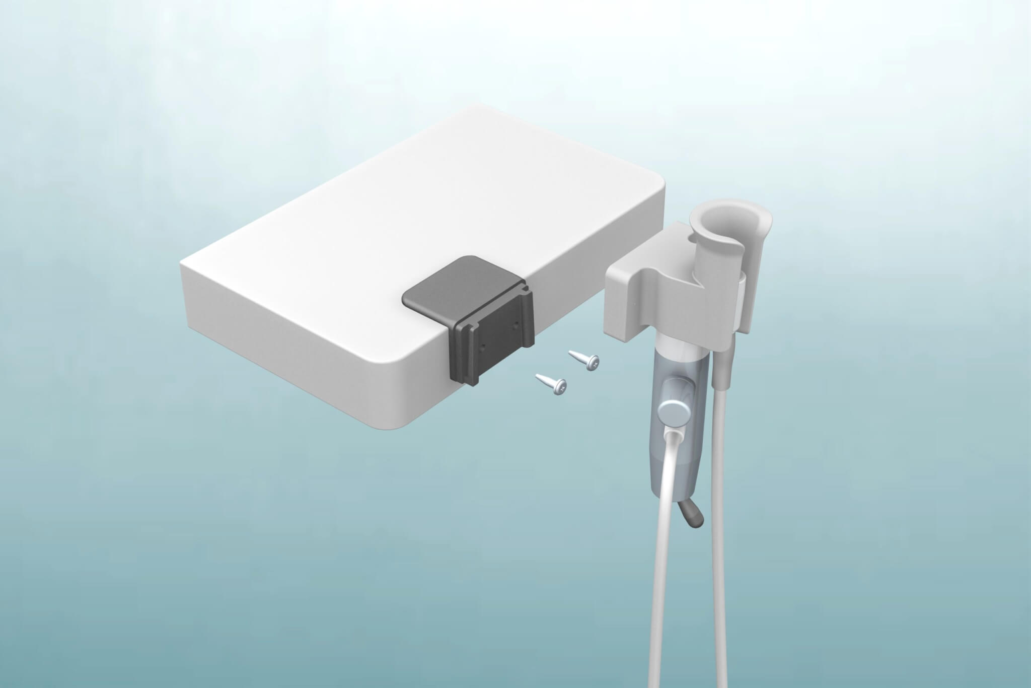 Dockinghouder voor montage van de Yirro-plus® COMFORT of PREMIUM docking op een bureaublad. De dockinghouder kan eenvoudig op de Assistent Unit worden gemonteerd met een 3M lijmstrip.